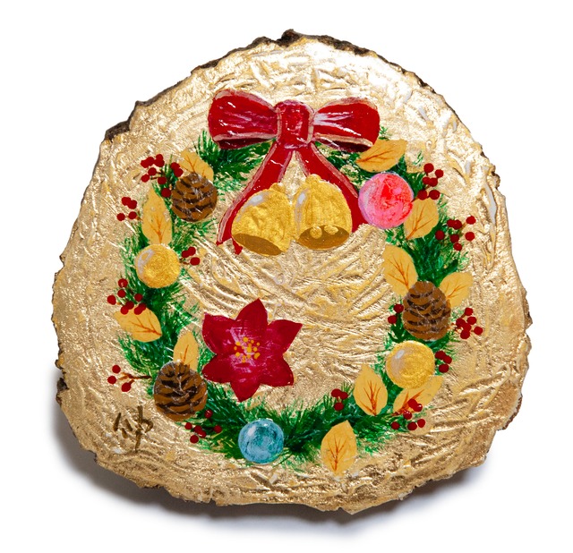 牧野伸英の絵画作品です。 真筆の1点ものであり、印刷ではありません。 額縁はありません。 サイズ:11.3×11.3センチ 厚さ2.7センチ 画材:天然樹木、アクリル絵の具、金属箔 ※ 置いていただく前提で制作しておりますが、 壁に掛けるご希望がありましたらご連絡ください。 裏側に紐を取り付けてお送りいたします。 実物をご覧になりたい場合は「CONTACT」からご連絡ください。