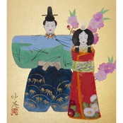 裏箔の色紙に立ち雛を描いています。