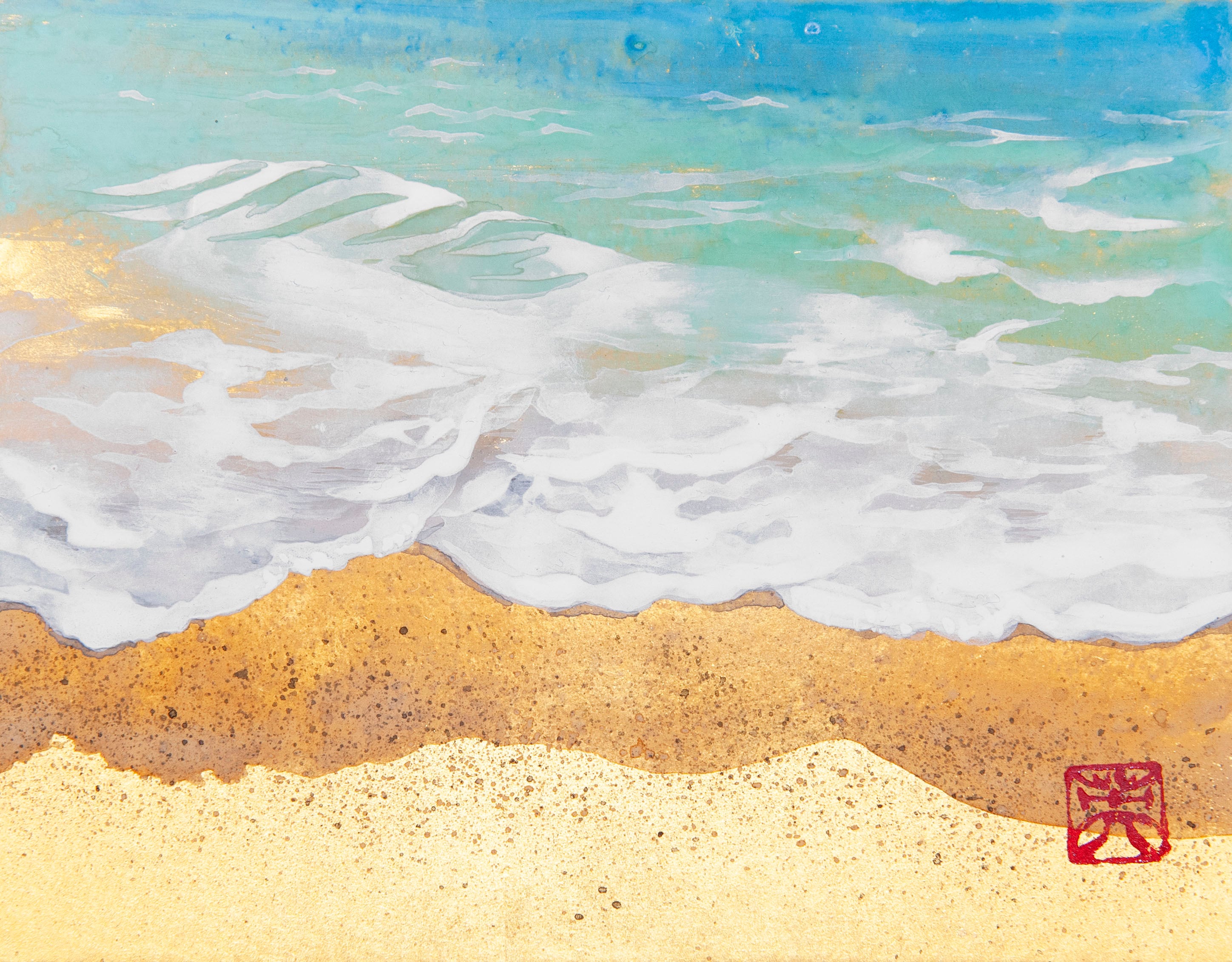 Materials: Japanese paper, metal leaf, chalk, mineral pigments